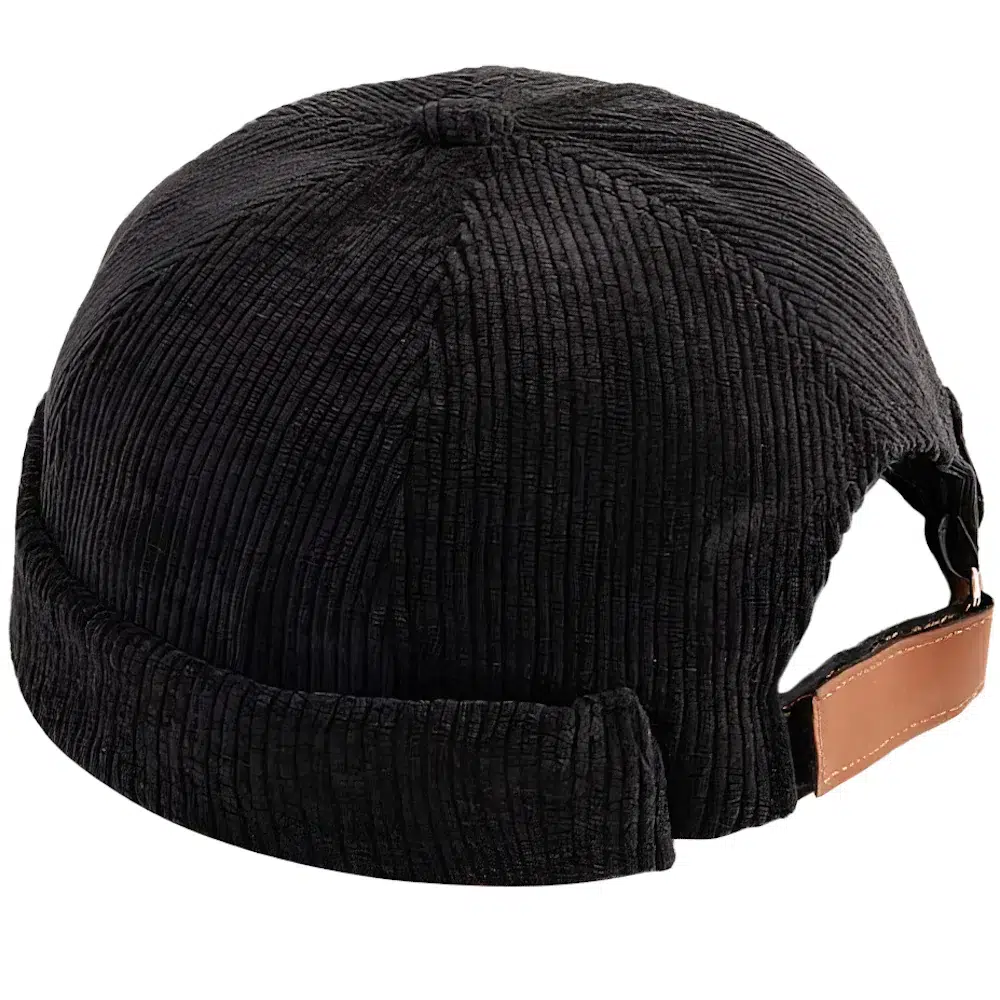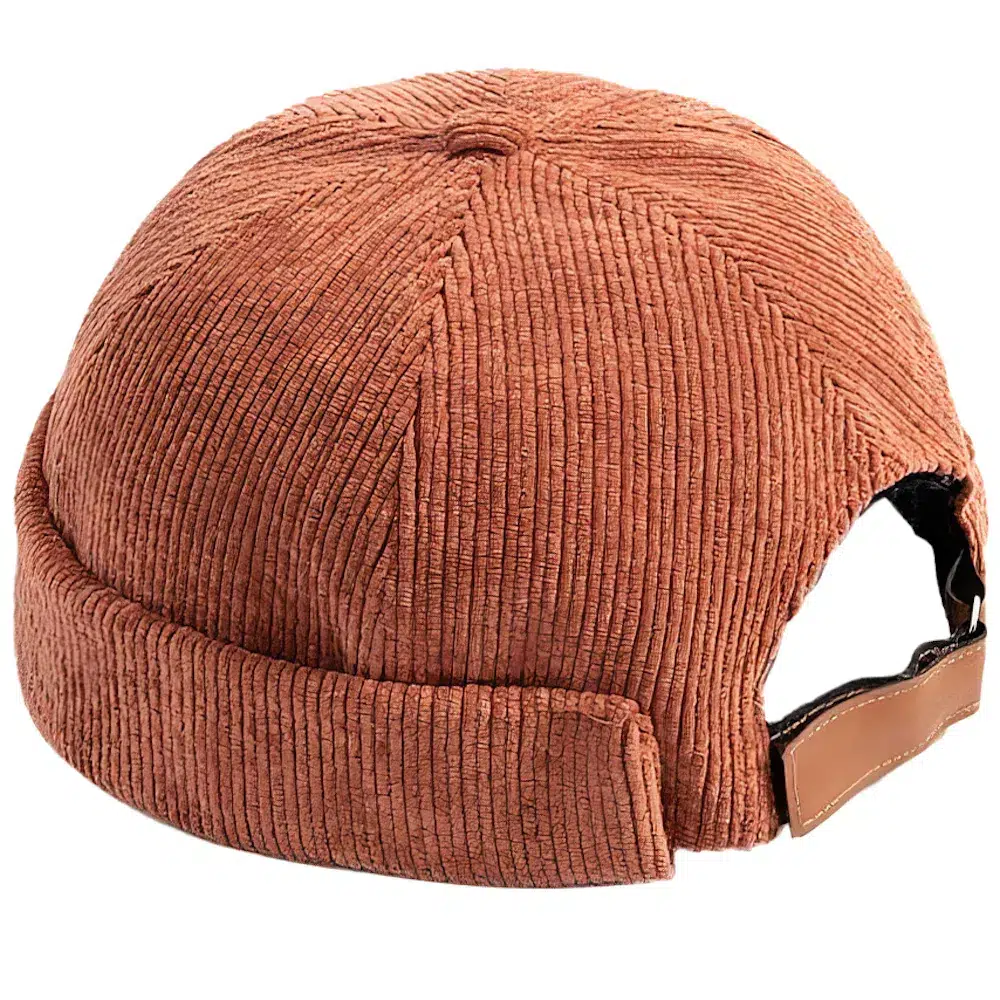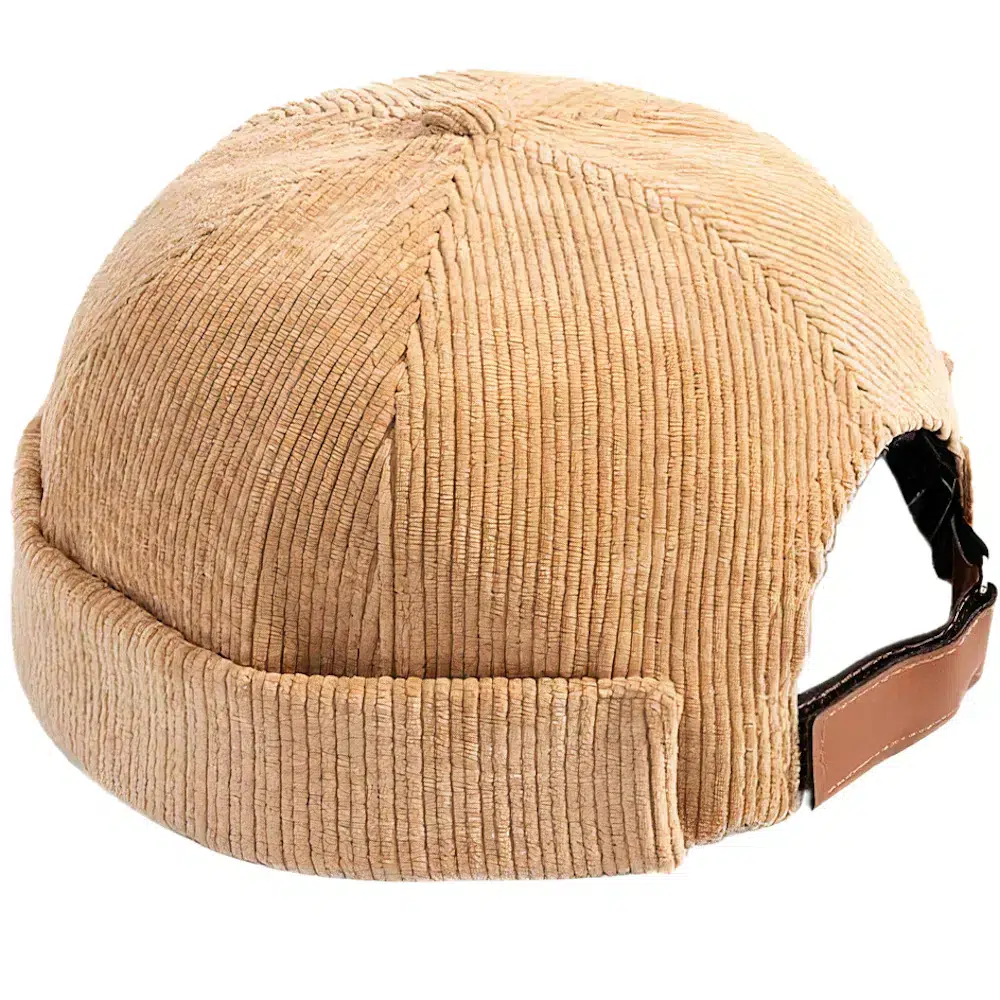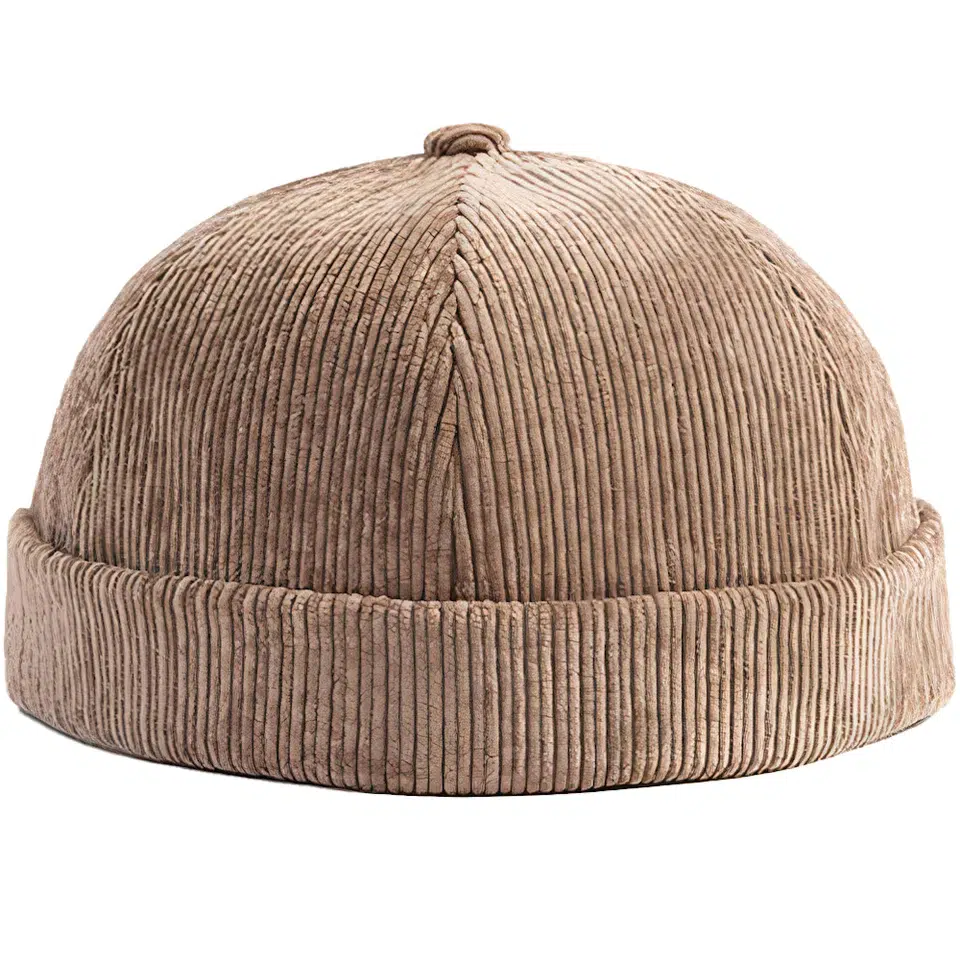 La casquette docker côtelée, une pièce de mode distincte. Son design sans visière et rebords offre un style épuré.